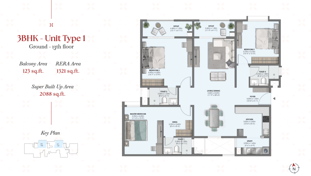 Discover spacious, thoughtfully designed 3 & 4 BHK apartments nestled in a premium residential community at Sompura Gate, Sarjapur Road, Bangalore. Spread over 2.51 acres, this project offers 110 luxurious homes with modern architecture, large layouts, and an abundance of open green spaces to create a serene, comfortable lifestyle.